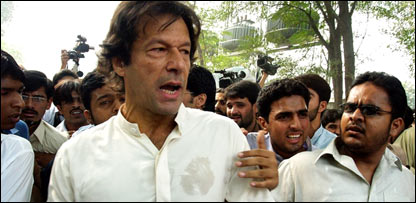 پولیس نے پاکستان پیپلز پارٹی کی خواتین کارکنوں کے خلاف دہشت گردی کی دفعات کے تحت مقدمہ درج کیے ہیں جبکہ علامتی لانگ مارچ کی قیادت کرنے والے پارٹی کے صوبائی صدر شاہ محمود قریشی کو فیصل آباد اور تحریک انصاف کے سربراہ عمران خان کو لاہور سے گرفتار کر لیا گیا ہے۔ ہمارے نامہ نگار علی سلمان کے مطابق پاکستان تحریک انصاف کے سربراہ عمران خان کو پنجاب یونیورسٹی میں اسلامی جمیعت طلبا کے کارکنوں نے ایک گھنٹے محبوس رکھنے کے بعد پولیس کے حوالے کردیا ہے۔ عمران خان ایمرجنسی لگنے کے روز سے روپوش تھے اور پولیس و خفیہ ایجنسیاں ان کی تلاش میں تھیں۔