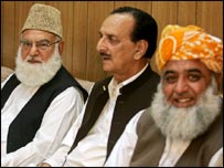 انتخابات کے بائیکاٹ کے بارے میں راجہ ظفر الحق کا کہنا تھا کہ موجودہ حالات انتخابات کے لیے سازگار نہیں۔ انہوں نے کہا کہ ’صاف و شفاف تو کیا موجودہ حالات میں انتخابات کا انعقاد ہی ممکن نہیں‘۔ جمیعت علمائے اسلام کے رہنما مولانا فضل الرحمان کی اجلاس میں عدم شرکت کے بارے میں راجہ ظفرالحق کا کہنا تھا کہ مولانا سے عدم شرکت کی وجہ دریافت نہیں کی گئی لیکن ان کے نمائندے اجلاس میں شریک ہوئے۔ راجہ ظفر الحق کا کہنا تھا کہ جنرل مشرف کی لگائی ہوئی آگ میں تمام ملک جل رہا ہے اور عوام سراپا احتجاج ہیں۔ تاہم اے پی ڈی ایم کے رہنما نے اس تاثر کو درست قرار نہیں دیا کہ اتحاد مصلحتوں کا شکار ہوکر حکومت کی خلاف نرم رویے کا اظہار کر رہا ہے۔ ’ہمارا احتجاج اور گرفتاریاں تو پہلے دن سے جاری ہیں‘۔ | اسی بارے میں مشرف اہلیت: سپریم کورٹ نے درخواستیں خارج کر دیں19 November, 2007 | پاکستان ’عوام پر ایک شخص کو ترجیح‘18 November, 2007 | پاکستان گرفتاریوں،نظربندی کا سلسلہ جاری04 November, 2007 | پاکستان ایمرجنسی: صدر اور وفاق کو نوٹس12 November, 2007 | پاکستان مشرف کسی صورت قبول نہیں: بینظیر18 November, 2007 | پاکستان ’نگران حکومت کا حلف غداری‘16 November, 2007 | پاکستان | ||||||||||||||||||||||||||||||||||||||||