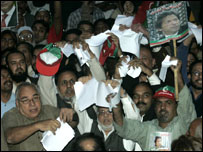 پاکستان میں عام انتخابات کے لیے جمع کرائے گئے کاغذات نامزدگی کی جانچ پڑتال کا کام شروع ہو گیا ہے اور یہ عمل تین دسمبر تک جاری رہے گا۔ عمران خان کی پاکستان تحریک انصاف انتخابات کا بائیکاٹ کر رہی ہے۔ اس کے علاوہ بینظیر بھٹو کے شوہر آصف علی زرداری نے کاغذات نامزدگی جمع نہیں کرائے۔ پیر کو ملک بھر میں کاغذاتِ نامزدگی جمع کرانے کی آخری تاریخ تھی اور امیدوار رات بارہ بجے تک کاغذات جمع کرا سکتے تھے۔ شاید اِسی وجہ سے پیر کے روز ریٹرننگ افسروں کے دفتروں میں غیرمعمولی گہما گہمی دیکھنے میں آئی۔ صوبہ پنجاب پاکستان مسلم لیگ (ن) کی جانب سے کاغذات جمع کرانے والوں میں سابق وزیر اعظم میاں محمد نواز شریف، ان کی اہلیہ بیگم کلثوم نواز، پنجاب کے سابق وزیر اعلٰی شہباز شریف اور مخدوم ہاشمی شامل ہیں۔ پاکستان مسلم لیگ( ق) کے میاں محمد اظہر، ہمایوں اختر خان اور کشمالہ طارق شامل ہیں۔ صوبہ سرحد