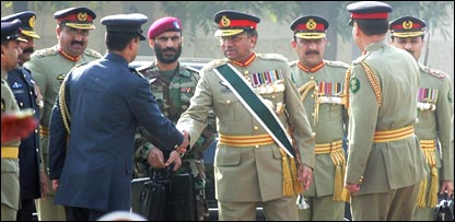 جنرل پرویز مشرف نے منگل کو مختلف فوجی مراکز کے دو روزہ الودعی دوروں کا آغاز راولپنڈی میں جائنٹ سٹاف ہیڈکواٹرز سے کیا۔ جنرل مشرف کی آمد پر انہیں عسکری روایت کے مطابق گارڈ آف آنر پیش کیا گیا جس کے بعد انہوں نے چئرمین جائنٹ چیفس آف سٹاف کمیٹی جنرل طارق مجید سمیت دیگر اعلی اہلکاروں سے ملاقات کی۔ اس موقع پر انہوں نے تحفوں کا تبادلہ بھی کیا۔ بعد میں جنرل مشرف نے اسلام آباد میں پاکستان بحریہ اور فضائیہ کے ہیڈکواٹر کے صدر دفاتر کا بھی دورہ کیا اور ان کے سربراہان سے ملاقاتیں کیں۔ جنرل مشرف بدھ کو جنرل ہیڈکواٹرز کا دورہ کریں گے جس کے بعد ایک تقریب میں فوج کی کمان جنرل اشفاق پرویز کیانی کے حوالے کی جائے گی۔ حکام کے مطابق فوجی کمان کی تبدیلی کی تقریب بدھ کو صبح دس بجے سرکاری ٹی وی پر براہ راست دکھائی جائے گی۔ تاہم بطور سویلین صدر پرویز مشرف فوج کے سپریم کمانڈر رہیں گے اور ان کے پاس اسمبلیاں تحلیل کرنے کا اختیار بھی ہوگا۔ حزب اختلاف کی جماعتیں کافی عرصے سے جنرل پرویز مشرف سے فوجی عہدہ چھوڑنے کا مطالبہ کر رہی تھیں۔ فوجی وردی اتارنے کا فیصلہ سیاسی مبصرین کے مطابق حزب اختلاف کے مطالبے سے زیادہ جنرل مشرف کے ملک کو جمہوریت کی راہ پر ڈالنے کے ان کے اپنے پروگرام کا حصہ ہے۔