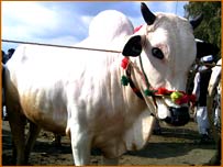 پچیس لاکھ روپے کی گائے، جس کا نام بادشاہ رکھا گیا تھا، شہر کے ایک نامور کاروباری شخص نے خریدی ہے
