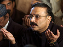 آصف علی زرادری نےکہا کہ سانحہ راولپنڈی کی تفتیش کے لیے ان کی جماعت اقوام متحدہ سے مدد حاصل کرے گی۔عالمی سطح کے وکلاء کو پاکستان طلب کیا گیا ہے جن کی پارٹی کی چھ رکنی کمیٹی مدد کر رہی ہے۔اس کمیٹی میں ڈپٹی رہنما لطیف کھوسہ، شیری رحمٰن، رحمٰن ملک اور دیگر شامل ہوں گے۔ آصف علی زرداری کا کہنا تھا کہ ان کی جماعت نے عالمی رائے عامہ ہموار کرنے کے لیے پارٹی کے وفود مختلف ممالک کے سربراہوں کے پاس بھیجنے کا فیصلہ کیا ہے۔ زرداری کے مطابق پیپلز پارٹی کے یہ وفود عالمی رہنماؤں سے ملاقات کرکے انہیں حقائق سے آگاہ کریں گے کہ پاکستان میں حکمرانی اصل عوامی نمائندوں کے پاس نہیں ہے اور ملک میں انتخابات کے شفاف ہونے کے امکانات بہت کم ہیں اور عالمی رہنماؤں کو انتخابات کی نگرانی کے لیے اپنے وفود بھیجنے کی اپیل کریں گے۔ آصف علی زرداری نےخبردار کیا کہ حکمران ہوش کے ناخن لیں، انہوں نے آدھا ملک پہلے ہی اپنی غلطیوں کی وجہ سے کھو دیا ہے اور باقی ملک کے پیچھے پڑے ہوئے ہیں مگر ان کی جماعت حکمرانوں کو ایسا کرنے نہیں دے گی۔ آصف علی زرداری نے کسی کا نام لیے بغیر کہا کہ وہ گورباچوف بننے کی کوشش نہ کریں، ملک چلانا ان کے بس کی بات نہیں، ملک کی جان چھوڑ دیں اور اقتدار قومی نگران حکومت کے حوالے کر دیں۔ آصف علی زرادری نے کہا کہ ملک میں جاری ہنگامہ آرائی اور تشدد کے واقعات میں ان کی جماعت پیپلز پارٹی کے کارکنان ملوث نہیں ہیں اور چند شرپسند عناصر وقت کا فائدہ اٹھاتے ہوئے سرکاری املاک کو نذر آتش کر رہے ہیں جس کی ہم مذمت کرتے ہیں۔ پیپلز پارٹی کی مرکزی مجلس عاملہ اور وفاقی کونسل کےمشترکہ اجلاس کے بعد میڈیا کو دی گئی بریفنگ کے دوران پیپلز پارٹی کے سینئر رہنماء مخدوم امین فہیم موجود نہیں تھے۔ اس بارے میں آصف زرداری سے جب سوال کیا گیا تو ان کا کہنا تھا کہ مخدوم امین فہیم ان کی اجازت سے چلے گئے ہیں، انہیں کسی جگہ پر جلدی پہنچنا تھا۔ آصف زرداری کےساتھ یوسف رضا گیلانی، مخدوم شاہ محمود قریشی، جہانگیر بدر، بابر اعوان اور دیگر پارٹی رہنما موجود تھے۔ نوڈیرو ہاؤس میں صحافیوں سے بات چیت کے دوران آصف علی زرداری کا لہجہ بہت سخت تھا۔انہوں نے سکاٹ لینڈ یارڈ کمیٹی کا خود ہی ذکر کیا اور مشرف کے ایسے اعلان پر شدید غصے میں اپنے ردعمل کا اظہار کیا۔