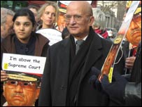 ایمنسٹی انٹرنیشنل کے تقریباً دو درجن وکلا ء اور کارکنوں نے اس مظاہرے میں پاکستان میں عدلیہ کی بحالی، سپریم کورٹ بار ایسوسی ایشن کے صدر اعتزاز احسن، معذول چیف جسٹس افتخار محمد چودھری اور پریس کی آزادی کے لیے نعرے لگائے۔ ان مظاہروں کے بارے میں ضبغت اللہ قادری نے کہا کہ اب برطانیہ میں سول سوسائٹی، وکلاء، بار کونسل کی انسانی حقوق کی کمیٹی، لاء سوسائٹی اور دیگر ادارے شامل ہو رہے ہیں جو کہ خاصے بااثر ادارے ہیں اور ان کی شمولیت کا اثر حکومت برطانیہ پر یقیناً پڑے گا۔ ان اداروں کی طرف سے آواز اٹھائے جانے پر حکومت لازمی طور پر نوٹس لے گی اور پارلیمنٹ میں بھی ان پر بات ہو سکتی ہے۔ انہوں نے مزید کہا کہ برطانوی وزیر اعظم کو جواب دینا پڑے گا کہ وہ پاکستان میں قانون کی بالادستی کو تسلیم کرتے ہیں اور اس کا احترام کرتے ہیں یا نہیں۔ انہوں نے کہا کہ یہ مظاہرے مشرف کے خلاف نہیں ہیں بلکہ ان کا مقصد حکومت برطانیہ کو یہ باور کرنا ہے کہ صدر مشرف کی حمایت نہ کی جائے بلکہ پاکستان عوام کی حمایت کی جائے۔ انہوں نے کہا کہ ان مظاہروں کا سلسلہ صدر مشرف کے چلے جانے کے بعد بھی جاری رکھا جائے گا۔ انہوں نے کہا کہ حکومت برطانیہ اور مغربی دنیا کو یہ بات ذہن میں رکھنی چاہیے کہ اگر دہشت گردی کے خلاف لڑنا ہے تو عوام کو ساتھ لے کر چلانا ہو گا اور پاکستانی عوام کو ساتھ لے کر چلنے ہی سے اس جنگ کے مطلوبہ نتائج حاصل کیئے جا سکتے ہیں۔ برطانیہ میں انسانی حقوق کی مختلف تنظیمیں، وکلاء اور پاکستانی برادری کے ارکان پیر کے دن صدر مشرف کے خلاف وزیر اعظم گورڈن براؤن کی سرکاری رہائش کے باہر مظاہرے کر رہے ہیں۔ صدر مشرف پیر کو وزیر اعظم گورڈن براؤن سے ملاقات کرنے والے ہیں۔ |