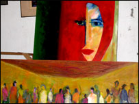 اپنی گیلری میں اپنے فن پاروں کے درمیاں بیٹھے رضوان نے بی بی سی کو بتایا کہ ستائیس دسمبر کی شام کو جب ان کے آس پاس کے اکثر لوگ اپنا غصہ نکالنے کے لیے گاڑیوں اور شہروں کو آگ لگا رہے تھے وہ اپنی گیلری کے دونوں دروازے بند کرکے اپنے غصے کو رنگوں کی مدد سے کینواس پر اتار رہے تھے۔ کیونکہ بینظیر کی ہلاکت کا دکھ تو انہیں بھی تھا۔