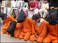 اس موقع پر چار نوجوانوں نے گوانتانامو جیل جیسا لباس اور کالے نقاب پہنا کر علامتی طور پر گوانتانامو جیل میں قید پاکستانی قیدیوں کا منظر پیش کیا ۔ جبکہ مظاہرین نے صدر مشرف کے خلاف جبکہ لاپتہ ہو جانے والے پیاروں کی بازیابی کے حق میں نعرے بازی بھی کی۔
