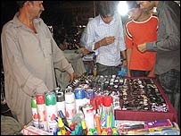 عمر کے اسٹال سے کچھ فاصلے پر قریب ہی سوات سے تعلق رکھنے والے نوجوان محمد سلیم نے دھوپ کے چشموں کا اسٹال لگایا ہوا تھا۔ چینی مصنوعات کی مقبولیت کی اس کی اپنی توجیح تھی۔ ’پاکستان میں اس لیے غربت ہے کیونکہ پاکستان کچھ بنا ہی نہیں سکتا اس لئے سب کچھ چائنا کا چل رہا ہے پاکستان میں۔‘ اس نے بتایا کہ اس کے پاس پچیس روپے سے ڈیڑھ سو روپے تک کا چشمہ دستیاب ہے اس کے باوجود لوگ بھاؤ تاؤ کرتے ہیں۔ ’سستے والا بھی ہوتا ہے مہنگا والا بھی ہوتا ہے، دن میں دس پندرہ چشمے بک جاتے ہیں، زیادہ تر غریب لوگ خریدتے ہیں، کیونکہ پاکستان میں غریب غریب سے غریب تر ہورہا ہے اور امیر امیر سے امیر تر۔‘ سلیم میرے سوال کے جواب میں اپنی بھڑاس بھی نکال رہا تھا۔ غربت کا پہلا نشانہ معیار زندگی ہوتا ہے اسی لیے شاید ان بازاروں کا رخ کرنے والے بہت سے لوگوں کے لیے اشیاء کے معیار کی اہمیت