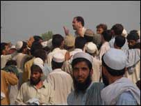 مغرب کا وقت تھا کہ کیمپ کے قریبی مسجد سے نماز پڑھ کر باجوڑ کے درجنوں مہاجرین باہر نکل آئے۔ میرے سوال کرنے پر سب ہی نے شکایتوں کا نہ ختم ہونے والا سلسلہ شروع کردیا۔ ماموند کے ایک شخص نے کہا ’ کیمپ تو قائم کر دیا گیا ہے لیکن پھر بھی ہم رات کو بھوکا سوئے ۔ ہمیں یہ نہیں بتایا گیا کہ اپنا کھانا پکاؤ ،یہاں لیٹرین کم ہیں مرد اور خواتین اور بچے اپنی قبائلی عزت کو بالائے طاق رکھ کر قطار میں کھڑے رہتے ہیں اور بہت سے لوگ تو آتے ہی نہیں ہیں‘۔ اس مجمع میں کھڑے ایک اور نوجوان نے کہا کہ’ کیمپ میں بجلی کی سہولت نہیں ہے، گرمی کی وجہ سے مچھر زیادہ ہیں، قبائلی روایات کے مطابق ہم نے ایک خاندان کے لیے مختص خیمے میں اپنے رشتہ داروں کے گھر والوں کو بھی جگہ دی ہوئی ہے۔ درجنوں افراد کے اس مجمع میں ہر کوئی اپنا داستان غم سنانا چاہ رہا تھا۔ایک شخص نے کہا کہ’ باجوڑ میں حکومت طالبان پر نہیں معصوم لوگوں پر بمباری کررہی ہے۔طالبان ان کے سامنے گھوم پھررہے ہیں مگر انہیں نشانہ بنانے کی بجائے عام شہریوں پر گولے گرائے جاتے ہیں۔ ایک اور شخص قدرے غصے میں کہنے لگا’ ہمیں یہ سمجھ نہیں آتی کہ حکومت گولی بھی دیتی ہے اور روٹی بھی۔ ایک طرف باجوڑ میں بمباری کرکے ہمیں بے گھر کردیا گیا ہےتو دوسری طرف کیمپ لگاکر ہمیں گھر فراہم کرنے کا ڈھونگ رچا یا جارہا ہے۔