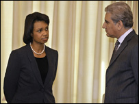 کونڈولیزا رائس اپنے پاکستانی ہم منصب شاہ محمود قریشی کے ساتھ
