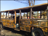 نجی تعلیمی ادارے کی بس جسے نظرِ آتش کر دیا گیا