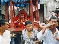 لیکن گزشتہ چھ مہینوں سے کماری کے سرپرتوں نے بلدیہ کے ساتھ جھگڑے کی بنا پر کماری کو منظر عام پر آنے سے روک دیا تھا۔ کماری کے رکھوالوں کا کہنا ہے کہ سیاحوں سے ہونے والی سالانہ دو لاکھ ڈالر کی آمدنی میں سے کم از کم دس فیصد انہیں ملنا چاہیے۔ بلدیہ کے حکام کا کہنا ہے کہ انھیں اس مندر جسے حال ہی میں اقوام متحدہ کے آثار قدیمہ کے ادارے نے مخدوش عمارتوں کی فہرست میں شامل کر دیا ہے کی دیکھ بحال کے لیے کافی رقم درکار ہے۔ انہوں نے کہا کہ کماری کے رکھوالوں کو انہوں نے دو سو امرکی ڈالر ماہانہ دینے پیش کش کی ہے۔ |