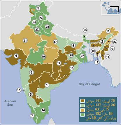 بیس اپریل سے شروع ہونے والے الیکشن چارمرحلوں میں ہونگے۔اس نقشے میں ملک کی ریاستوں پر نمبر درج ہیں اور نقشے کے نیچے پولنگ کی تاریخیں درج ہیں۔