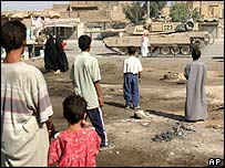 فرانس کے خبر رساں ادارے کے ایک نمائندے نے بی بی سی کو بتایا کہ اس نے نجف شہر سے لوگوں کونکلتے ہوئے دیکھا۔ اس نے مزید کہا کہ حضرت علی کے روضہ کے پاس ٹینک پہنچ چکے ہیں جہاں شیعہ رہنما مقتدی الصدر کے حامی محصور ہیں۔