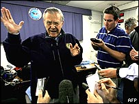 رمزفیلڈ نے عراق پہنچنے سے پہلے صحافیوں سے گفتگو کی