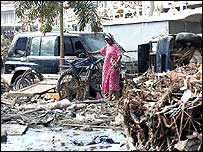 انڈونیشیا میں ہزاروں کی تعداد میں فوجیوں کو اجتماعی قبریں کھودنے کے کام پر لگا دیا گیا ہے۔ بی بی سی کی نامہ نگار ریچل ہاروی نے انڈونشیا کے صوبائی دارالحکومت بند آچے سے اطلاع دی ہے کہ انہوں نے صرف بیس منٹ کے وقفے میں لاشوں سے بھرے دس ٹرک گنے جن کو ایک اجتماعی قبر میں دفنانے کے لیے لے جایا جا رہا تھا۔ |