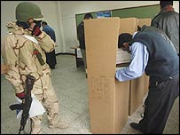 گزشتہ پانچ عشروں میں عراق کے پہلے کثیرالجماعتی انتخابات کو ’کامیاب‘ قرار دیا گیا ہے اور انتخابی کمیشن کا کہنا ہے کہ توقع کے خلاف لگ بھگ ساٹھ فیصد عراقیوں نے اتوار کی ووٹنگ میں حصہ لیا ہے۔ امریکہ کی نئی وزیر خارجہ کونڈلیزا رائس نے کہا ہے کہ عراق نے مستقبل کی طرف ’ایک بہت بڑا قدم‘ لیا ہے جبکہ امریکی صدر بش اس موقع پر خطاب کررہے ہیں۔ |