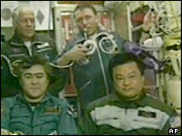 خلا سے حاصل کی گئی تصاویر سے بظاہر اس بات کی تصدیق ہوتی ہے کہ دیوارِ چین کو کسی آلے کی مدد کے بغیر کھلی آنکھ سے دیکھا جا سکتا ہے۔ چینی سکولوں میں زیرِتعلیم بچوں کو طویل عرصے سے یہ پڑھایا جاتا رہا ہے کہ دیوارِ چین انسانی کی بنائی ہوئی وہ واحد چیز ہے جسے خلا سے کھلی آنکھ کی مدد سے دیکھا جا سکتا ہے۔ لیکن گزشتہ برس پہلے چینی خلا باز یانگ لیوی نے یہ کہہ کر اپنی قوم کو مایوس کر دیا تھا کہ انہیں خلا سے ایسی کوئی چیز دکھائی نہیں دی۔  |  لیرائے چاؤ (نیچے دائیں) |