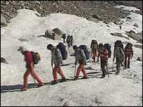 اس کورس میں حصہ لینے کے لیے بائیس افراد کو منتخب کیا گیا ہے جن میں دو خواتین بھی شامل ہیں۔ ان بائیس افراد میں سے نو سابق مجاہدین ہیں اور ان کا انتخاب اقوامِ متحدہ کی مدد سے مجاہدین کو غیر مسلح کرنے والی ایک تنظیم نے کیا ہے۔ کوہ پیمائی کے گائیڈ تیار کرنے کے اس کورس کو آغا خان فاؤنڈیشن اور اور امریکہ کی بین الاقوامی ترقی کی ایجنسی کی مدد بھی حاصل ہے۔ ایک سابق افغان مجاہد کمانڈر رحیم خان کا کہنا تھا کہ’مجھے ان پہاڑیوں میں روسیوں کے خلاف لڑائی کا وسیع تجربہ ہے اور اب اس تجربے کو میں ایک پر امن مقصد کے لیے استعمال کر رہا ہوں‘۔ کابل کے شمال میں واقع پنج شیر وادی میں تربیت کے لیے جانے سے قبل ان بائیس طلباء و طالبات کو بنیادی حفاظتی اصولوں کے بارے میں تعلیم دی گئی ہے۔ اس تعلیم کے دوران ان افراد کو علاقے کی جغرافیائی ماہیت اور ارضیات کے بارے میں بھی پڑھایا گیا ہے۔ اس کورس میں شامل افراد نے 5000 میٹر سے بلند چوٹیوں پر تربیت حاصل کی۔ اس تربیت کے دوران انہیں برفانی میدانوں اور گلیشیئروں کو عبور کرنا اور چٹانوں پر چڑھنے کی تعلیم دی گئی۔ اس کورس میں شامل ایک خاتون روحینہ اس سلسلے میں بہت پرجوش تھیں۔ ان کا کہنا تھا کہ ’ تین برس قبل تو میں اپنے گھر سے بھی نہیں نکل سکتی تھی اور اب میں نے ایک پہاڑ سر کر لیا ہے‘۔ تمام بائیس افراد نے کوہ پیمائی کی رہنمائی کے اس بنیادی کورس میں کامیابی تو حاصل کی ہے لیکن پہاڑوں کے بارے میں معلومات رکھنے کے باوجود ایک کوہ پیما رہنما بننا ان افراد کے لیے ایک مشکل عمل ہے۔یہ تمام افراد انگریزی سے نابلد ہیں جو کہ غیر ملکی کوہ پیماؤں سے رابطے کے لیے نہایت ضروری ہے تاہم پروفیسر کارلو پائنلی کا کہنا ہے کہ ’ یہ پہلا قدم ہے‘۔ پروفیسر پائنلی کو امید ہے کہ یہ افراد کوہ پیمائی اور پہاڑ نوردی کی صلاحیتوں سے فائدہ اٹھائیں گے تاہم ان کا کہنا ہے کہ ان رہنماؤں کو مستقل گاہک ملنے میں وقت لگے گا۔ وہ اگلے برس واخان کے علاقے میں ایک زیادہ بہتر کورس منعقد کرنے کا ارادہ رکھتے ہیں۔ واخان میں افغانستان کی بلند ترین چوٹیاں واقع ہیں۔ افغانستان دنیا بھر کے کوہ پیماؤں کے لیے ایک پر کشش ملک ہے۔ اس میں دنیا کے بلند و بالا ترین پہاڑ واقع ہیں اور ان میں سے کچھ کو ایک مرتبہ بھی سر نہیں کیا گیا ہے۔ افغانستان کی بلند ترین چوٹی کی اونچائی 7500 میٹر ہے اور اسے آخری مرتبہ بیس برس قبل سر کیا گیا تھا لیکن اب لگتا ہے کہ افعانستان میں کوہ پیمائی کے ایک نئے دور کا آغاز ہونے والا ہے۔ |