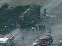 امریکی حکام کا کہنا ہے کہ سمندری طوفان ریٹا کے خطرے کے پیشِ نظر ہیو سٹن سے منتقل کیے جانے والے افراد کی بس میں آگ لگنے سے کم از کم چوبیس مسافر زندہ جل گئے ہیں۔ یہ واقعہ ڈیلاس کے شمال میں انٹر سٹیٹ پنتالیس نمبر ہائی وے پر پیش آیا۔ حادثے کے وقت سڑک پر گاڑیوں کی لمبی قطاریں موجود تھیں۔ پولیس کے ترجمان نے خبر رساں ادارے اے پی کو بتایا کہ بس میں سوار مسافر آکسیجن استعمال کر ہے تھے جس کی وجہ سے آگ زیادہ تیزی سے بھڑکی۔ اس سے قبل کہا گیا تھا کہ یہ آگ تکنیکی خرابی کی وجہ سے لگی۔ ترجمان نے کہا کہ ’ پولیس اہلکار تمام مسافروں کو بس سے نکالنے میں ناکام رہے‘۔ اطلاعات کے مطابق اس بس میں 45 مسافر سوار تھے۔ بس کے تمام مسافروں کو بیل ائر میں واقع ایک نرسنگ ہوم سے نکالا گیا تھا۔ پولیس کے ترجمان کا کہنا ہے کہ بس پر موجود آکسیجن سلنڈروں کے پھٹنے کی وجہ سے دھماکے بھی ہوئے۔ بس کے حادثے کے بعد ہائی وے کی ساتھ والی لین بند کر دی گئیں جس کی وجہ سے ٹریفک جام ہو گیا اور سو کلومیٹر تک گاڑیوں کی قطاریں لگ گئیں۔ |