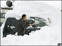 جاپان کے کچھ علاقوں کے بارے میں بتایا گیا ہے کہ وہاں دس فٹ تک برف کی تہیں جم گئی ہیں۔