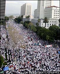 لاس انجیلس میں ہزاروں افراد نے امریکہ کی اس پالیسی کے خلاف مظاہرہ کیا ہے جس کے تحت ایسے تمام لوگوں کے جرم کو سنگین تصور کیا جائے گا جن کے پاس قانونی دستاویزات نہیں ہوں گے۔ مظاہرے کے ایک منتظم جیویئر نے بتایا کہ مظاہرین انسان دوست امیگریشن پالیسی چاہتے ہیں نہ کہ نسلی منافرت پر مبنی کوئی قانون۔ پیر کو سخت امیگریشن کے حامی واشنگٹن اور بوسٹن کی سڑکوں پر مظاہرے کریں گے۔ اسی ہفتے کے اوائل میں ملواکی میں ہزاروں افراد نے امیگریشن کے اس منصوبے کے خلاف مظاہرہ کیا تھا جس کے تحت ہر اس کارکن کو مجرم قرار دیا جائے گا جس کے پاس دستاویزات نہیں پائے گئے۔ مسٹر جوویئر کا کہنا تھا کہ مظاہرین چاہتے ہیں کہ تارکینِ وطن افراد کے خلاف کی جانے والی اصلاحات کو روکا جائے اور ان کا یہ مطالبہ ہے کہ امیگریشن کی اصلاحات اایسی ہو جو انسان دوست ہوں اور منصفانہ ہوں۔ مظاہرہ کرنے والوں میں شریک ایک شخص لیونل وینگاس نے خبر رساں ادارے رائٹرز کو بتایا کہ امیگریشن کا بل غلط ہے کیونکہ ’یہ دنیا آزاد ہے اور یہ ملک ہر اس شخص کا ہے جو بہتر زندگی گزارنا چاہتا ہے۔‘ مظاہرین اس بل کی مخالفت کر رہے ہیں جسے گزشتہ سال نمائندگان نے منظور کیا تھا اور جس کے تحت امریکہ میں غیر قانونی طور پر رہنا سنگین جرم تصور کیا جائے گا۔ یہ مظاہرہ ایسے وقت ہوا ہے جب امریکی صدر جارج بش کانگریس پر زور دے رہے ہیں کہ وہ امیگریشن کے مسئلے پر تندی و تیزی میں کمی لائے۔ مبصرین کہتے ہیں کہ اس سال نومبر میں درمیانی مدت کے انتخابات میں یہ مسئلہ اہم انتخابی اشو کے طور پر سامنے آئے گا۔ امریکی سینیٹر اس موضوع پر تفصیلی بحث کرنے والے ہیں اور حکمراں جماعت کے کئی رکن بھی صدر بش کی اس تجویز کی مخالف کر رہے ہیں کہ میزبان کارکن کے نام سے ایک منصوبہ تیار کیا جائے۔ صدر بش کی تجویز کے مطابق غیر ملکیوں کو یہ اجازت ہوگی کہ وہ ایک خاص اور مقررہ مدت کے لیئے اور خاص ملازمتوں کے لیئے امریکہ میں رہ سکیں۔ اندازوں کے مطابق اس وقت امریکہ میں گیارہ اعشاریہ پانچ ملین لوگ غیر قانونی طور پر رہ رہے ہیں۔ان میں سے بہت سے زرعی سیکٹر، تعمیر شعبوں اور خدمات کی صنعتوں میں کام کرتے ہیں۔ صدر بش نے کہا ہے کہ پیغام یہ ہونا چاہیئے کہ اگر لوگ وہ کام کر رہے ہیں جو امریکی خود نہیں کرنا چاہتے تو ایک خاص مدت کے لیئے ایسے لوگوں کو امریکہ آنے دیا جائے۔ تاہم ان کی تجاویز کی مخالفت ان کی اپنی ہی جماعت کے کچھ ارکان کر رہے ہیں۔ | اسی بارے میں نئی امریکی امیگریشن پالیسی 07 January, 2004 | صفحۂ اول امریکی امیگریشن قوانین میں سختی 26.04.2003 | صفحۂ اول کیا وہ نمرود کی خدائی تھی ۔۔۔17 September, 2004 | قلم اور کالم | ||||||||||||||||||||||||||||||||||||||||