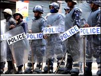 شہر میں جگہ جگہ مقامی آبادی نے مظاہرین کے لیئے پینے کے پانی کا بندوبست کر رکھا ہے۔گرمی سے بچاؤ کے لیئے لوگ اپنی چھتوں سے مظاہرین پر پانی کا چھڑکاؤ کرتے ہیں غرض کہ ہرکام بہت منظم اور پرامن طریقے سے انجام پاتا ہے۔ ادھر فوج نے شاہی محل کے گرد کئی قطاروں کا حفاظتی گھیرا بنا رکھا ہے۔ ان کے آگے مسلح پولیس تعینات ہے۔ جگہ جگہ بکتر بند گاڑیاں اور بھاری مشین گنیں نصب کی گئی ہیں۔ مظاہرین کو محل سے کافی دور روک دیا جاتا ہے۔ وہ نعرے لگاتے ہوئے آگے بڑھنے کی کوشش کرتے ہیں لیکن انہیں فائرنگ، لاٹھی چارج اور اشک آورگولوں سے پسپا کر دیا جاتا ہے اور ہر روز سینکڑوں جمہوریت حامی مظاہرین زخمی ہو رہے ہیں۔ دارالحکومت کے علا وہ ملک کے دوسرے شہروں میں بھی زبردست مظاہرے ہو رہے ہیں اور جیسے جیسے مظاہروں میں شدت آ رہی ہے ویسے ہی پولیس اور فوج کے تشدد میں بھی اضافہ ہو رہا ہے۔ سیاسی جماعتوں نے اعلان کر دیا ہے کہ وہ اپنے مطالبات کے حصول تک جمہوریت کی تحریک جاری رکھیں گی۔ عوام مکمل طور پر ان کے ساتھ ہیں اور مظاہرین کی تعداد بڑھتی جا رہی ہے۔ ان کی منزل شاہی محل ہے اور وہ رفتہ رفتہ محل کے نزدیک پہنچتے جا رہے ہیں۔ |