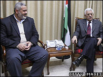 فلسطینی صدر محمود عباس نے حکمراں شدت پسند تنظیم حماس کے وزیراعظم اسماعیل حانیہ سے بات چیت شروع کی ہے۔ غزہ میں ہونے والے ان مذاکرات کا مقصد اسرائیلی قبضے کے خلاف تمام فلسطینی دھڑوں کے لیئے مشترکہ لائحہ عمل ترتیب دینا ہے۔ فلسطینی صدر محمود عباس کا تعلق فتح تحریک سے ہے۔ حماس اور فتح میں کئی معاملات پر گزشتہ دنوں کافی اختلافات رہے ہیں ہیں۔ حماس اسرائیل کا وجود تسلیم نہیں کرتی۔ صدر محمود عباس عوامی رائے جاننے کے لیئے ریفرنڈم کروانا چاہتے تھے۔ حماس اور فتح کے رہنماؤں کے درمیان اس بات چیت کے متعلق کہا جا رہا ہے کہ دونوں کے درمیان کوئی اہم معاہدہ ہونے والا ہے۔ دونوں طرف کے حکام کئی دنوں سے بات چیت میں مصروف ہیں اور انہوں نے کئی مرتبہ یہ کہا ہے کہ اختلافات ختم ہو سکتے ہیں۔ اس طاقت کی کشمکش کی وجہ سے حالیہ ہفتوں میں حماس اور فتح کے حمایتیوں کے درمیان غزہ کی گلیوں میں لڑائی ہو چکی ہے۔ | اسی بارے میں قومی اتحاد کی حکومت پر غور18 June, 2006 | آس پاس ریفرنڈم پر اتفاقِ رائے نہ ہو سکا11 June, 2006 | آس پاس غربِ اردن میں الفتح کی نئی ملیشیا04 June, 2006 | آس پاس عمر بھرانتظار نہیں کر سکتے: عباس25 May, 2006 | آس پاس فلسطینی انٹیلیجنس سربراہ شدید زخمی20 May, 2006 | آس پاس فلسطینی دھڑوں کے بیچ مسلح جھڑپیں19 May, 2006 | آس پاس حماس، الفتح کے درمیان صلح23 April, 2006 | آس پاس فلسطین کی مالی مدد کریں گے: روس15 April, 2006 | آس پاس | ||||||||||||||||||||||||||||||||||||||||