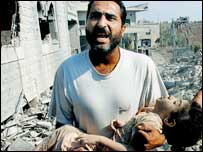 جینیوا کنوینشن میں صرف ان مقامات پر حملے کی اجازت دی گئی ہے جہاں حملے کرنے والے کو اہم نوعیت کی مخالف فوجی کارروائیوں ہوتی نظر آتی ہوں اسی تناسب سے اگر دیکھا جائے تو اسرائیلی بمباری کا نشانہ زیادہ تر شہری عمارتیں یا ان کے قریب کے علاقے بنے ہیں۔ جہاں تک حزب اللہ کا تعلق ہے تو وہ اندھا دھند اسرائیلی شہری علاقوں پر حملے کر رہا ہے اور اسرائیل کے مطابق اس نے شہریوں کو بطور ڈھال کے بھی استعمال کیا ہے۔ اب سوال یہ ہے کہ آیا امریکہ کو اسرائیل کو مزید دس سےچودہ دن دینے چاہیں جس کے بارے میں اسرائیلی وزیراعظم ایہود اولمرت نے امریکی سیکریٹری کو بتایا تھا کہ حزب اللہ کے خاتمے کے لیے انہیں اس کی ضرورت ہے۔ اگر امریکہ چاہے تو وہ سلامتی کونسل کے منشور کے باب سات کی فوری جنگ بندی سے متعلق قرارداد کو ویٹو نہیں کرسکتا تاہم اس کے لیے ضروری ہے کہ تمام رکن ممالک اس قرار داد کی تائید کریں۔ امریکہ کا خیال یہ ہے کہ کوئی بھی قرار داد اس مسئلے کے دیرپا یا پائیدار حل کی بنیاد پر ہونی چاہیے اور اس سے پہلے اس پس منظر میں تمام بنیادی مسائل پر کوئی معاہدہ ضروری ہے۔ بنیادی مسائل جن کا تعلق حزب اللہ پر پابندی، بین الاقوامی امن فوج کی تعیناتی اور لبنانی حکومت کے اختیارات میں بتدریج کونڈو لیزا رائس کو مشرق وسطی کے دورے کے دوران بتایا گیا تھا کہ حزب اللہ سمیت لبنانی حکومت نے ان بنیادی باتوں پر مشتمل ایک منصوبے کی منظوری دی ہے تاہم قانا میں ہونے والے حملوں نے مرحلہ والی ہونے والی اس سفارت کاری میں بگاڑ پیدا کر دیا ہے۔ لبنانی وزیراعظم فواد سینیورا کے اس بیان کے بعد کہ فوری جنگ بندی ہی پر بات کی جائے گی، رائس نے اپنا بیروت کا دورہ ملتوی کردیا جو وہاں کسی معاہدے کی تشکیل کے لیے جانا چاہتی تھیں۔انہیں یروشلم کے دورے کے دوران علم ہوا کہ اقوام متحدہ کی جنگ بندی سے متعلق قرار داد پر کام تیز کر دیا گیا ہے مگر ان کی جانب سے تاحال جنگ بندی کی کوئی بات نہیں کی گئی ہے۔ بمباری کے بعد عوامی احتجاج اور فوری جنگ بندی کے مطالبے میں مزید شدت آئی ہے۔ یہ باتیں بھی ہو رہی ہیں کہ بدھ یا اس ہفتے کے آخر تک سلامتی کونسل میں قرار داد پیش کر دی جائے گی۔ رائس کا کہنا تھا کہ ’ہم چاہتے ہیں کہ سلامتی کونسل اس معاملے میں جلد کوئی قدم اٹھائے اور امریکہ یہ بھی چاہتا ہے کہ اجلاس کے موقع پر ایک حقیقی جنگ بندی کے لیے واضح پیش قدمی کی جائے’۔ برطانوی وزیراعظم ٹونی بلیئر جو امریکی موقف کی حمایت کر رہے ہیں، نے بھی اس معاملے میں جلد کوئی قدم اٹھانے کے بارے میں بات کی ہے۔ سان فرانسسکو میں بات کرتے ہوئے انہوں کہا کہ’اس قسم کی صورت حال جاری نہیں رہ سکتی’۔ اقوام متحدہ میں برطانوی سفیر سر ایمر جونز پیرے نے جنگی کاروائیوں کے خاتمے اور سیاسی بنیاد پردیر پا حل کی بات کی ہے۔ |