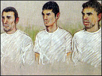 عدالت میں پیشی کے وقت تنویر حسین، آدم خطیب اور اسد علی سرور کے خاکے