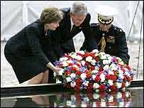 صدر بش نے کہا:’اگر ہم نے اپنے دشمن کو شکست نہ دی تو ہمارے بچوں کے سامنے ایک ایسا مشرقِ وسطیٰ ہوگا جہاں دہشت گرد ریاستیں اور ریڈیکل ڈکٹیٹر ہوں گے جو جوہری ہتھیاروں سے مسلح ہوں گے۔‘ انہوں نے کہا کہ یہ جنگ دنیا بھر میں کروڑوں لوگوں کی تقدیر کا تعین کرے گی۔ پندرہ منٹ کے خطاب میں امریکی صدر نے اصرار کیا کہ عراق بھی دہشت گردی کے خلاف جنگ کا ایک حصہ ہے کیونکہ امریکیوں کے محفوظ رہنے کا انحصار بغداد کی گلیوں میں لڑی جانے والی جنگ کے نتیجے پر ہے۔ انہوں نے معزول عراقی صدر صدام حسین کے القاعدہ کے ساتھ عدم تعلق کو تسلیم تو کیا لیکن کہا کہ صدام حسین کے بغیر عراق زیادہ محفوظ جگہ ہے کیونکہ معزول عراقی صدر واضح طور پر ایک خطرہ تھے۔ انہوں نے کہ عراق میں ’ہم سے غلطیاں ہوئی ہوں گی مگر اب سب سے بڑی غلطی یہ ہوگی کہ ہم وہاں سے نکل جائیں یہ سوچ کر کہ دشمن ہمارے پیچھے نہیں آئے گا۔‘ انہوں نے کہا کہ کتنا ہی وقت کیوں نہ لگ جائے، اسامہ بن لادن کو گرفتار کر لیا جائے گا۔ | اسی بارے میں گیارہ ستمبر: پانچ سال بعد10 September, 2006 | منظر نامہ اگلا نشانہ اسرائیل، خلیجی ریاستیں‘11 September, 2006 | آس پاس مسلمانوں کے لیئے امتحان کا دور11 September, 2006 | انڈیا 9/11: پاکستانی شہری امیر ہو گئے11 September, 2006 | پاکستان | ||||||||||||||||||||||||||||||||||||||||