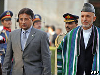 دوسری جانب صدر مشرف کہتے ہیں کہ طالبان سے لڑنے کے لیئے یہ معاہدے ضروری تھا۔ وہ کرزئی کے دیگر الزامات کی بھی تردید کرتے ہیں۔ ان کا کہنا ہے کہ پاکستان دہشتگردی سے نمٹنے کے لیئے ہر ممکن اقدام اٹھا رہا ہے۔ مشرف کا کہنا ہے کہ صدر کرزئی دراصل اس سلسلے مںی زیادہ متحرک نہیں ہیں۔ منگل کو صدر بش اور صدر کرزئی نے واشنگٹن میں مذاکرات کیئے۔ بش نے افغانستان میں تعمیر نو اور سکیورٹی میں کردار ادا کرنے کا اعدہ کیا۔ بی بی سی کی نامہ نگار باربرا پلیٹ کا کہنا ہے کہ صدر بش مشرف اور کرزئی کے درمیان تناؤ پر تشویش کا شکار ہیں۔ افغانستان میں تشدد کے بڑھتے واقعات پر دونوں رہنماؤں کے لیئے بش کا یہی پیغام ہوگا کہ حالات بہتر بنانے کے لیئے تعاون کریں۔ ہلمند میں منگک کو ایک خودکش حملے میں 18 افراد ہلاک ہوگئے تھے۔ افغانستان میں برطانوی فوج کے کمانڈر کا دعوٰی ہے کہ انہوں نے ہملند میں طالبان جنگجوؤں کو شکست دے دی ہے۔ | اسی بارے میں افغانستان:’ناکام ہوجانے کا خدشہ‘13 September, 2006 | آس پاس نیٹو کمک کی کوئی پیشکش نہیں14 September, 2006 | آس پاس جنازے پر بھی خودکش حملہ12 September, 2006 | آس پاس ’جنوبی افغانستان میں کمک بھیجیں‘07 September, 2006 | آس پاس پوست کی کاشت، ساٹھ فیصد اضافہ03 September, 2006 | آس پاس افغانستان میں 14 برطانوی ہلاک02 September, 2006 | آس پاس قندھار: 14 برطانوی فوجی ہلاک02 September, 2006 | آس پاس | ||||||||||||||||||||||||||||||||||||||||