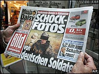 فوجی سربراہ نے کہا ہے کہ تصاویر کی تصدیق ہونے کے بعد ملوث افراد کے خلاف ’جرائم کے ارتکاب‘ کا مقدمہ کیا جائے گا۔ بدھ کو جرمن ٹی وی نے اس خبر کو بڑی کوریج دی۔ جرمن فوج کی نمائندگی کرنے والی ایک تنظیم کے سربراہ برنارڈ گارتز نے کہا ہے ’ہمیں معلوم کرنا ہوگا کہ اچھی تربیت اور اچھی نگرانی کے باوجود ایسی حرکات کیسے سرزد ہوئیں‘۔ اخبار نے یہ نہیں بتایا ہے کہ اسے یہ تصاویر کہاں سے ملیں اور نہ ہی ان کے مصدقہ ہونے کا کوئی ثبوت دیا گیا ہے۔ افغانستان میں جرمنی کے 2800 فوجی ہیں جو دیگر فوجیوں کی نسبت قدرے پرسکون مقامات پر تعینات ہیں۔ پچھلے ماہ جرمنی کے ایوان زیریں نے افغانستان کی بگڑتی سکیورٹی صورتحال کے باعث وہاں جرمن فوج کی موجودگی اکتوبر تک بڑھانے پر اتفاق کیا تھا۔ | اسی بارے میں عراق: ابوغریب میں قیدیوں پرمظالم15 February, 2006 | آس پاس ابو غریب کی نئی تصاویر15 February, 2006 | آس پاس ابو غریب تصاویر پر امریکی ردعمل16 February, 2006 | آس پاس اعلیٰ امریکی فوجی اہلکار پر مقدمہ28 April, 2006 | آس پاس عراقی’قتلِ عام‘ پر امریکی پریشان31 May, 2006 | آس پاس عراق: فوجیوں کیخلاف تحقیقات30 June, 2006 | آس پاس افغان ہلاکت، امریکی پر مقدمہ08 August, 2006 | آس پاس | ||||||||||||||||||||||||||||||||||||||||