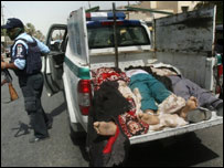 عراق کے وزیر صحت کا کہنا ہے کہ وہاں جاری تشدد میں ایک لاکھ سے ڈیڑھ لاکھ کے درمیان سویلین مارے گئے ہیں۔ یہ تعداد ہسپتالوں اور مردہ خانوں میں لائے جانے والی لاشوں کی گنتی کے اندازوں پر مبنی ہے۔ عراق میں ہلاک ہونے والوں کی تعداد کے بارے میں سرکاری سطح پر کوئی اعداد و شمار نہیں تیار نہیں کیے جاتے۔ عراقی وزارت صحت ان لوگوں کے زیراثر ہے جو امریکہ مخالف ایک ریڈیکل شیعہ رہنما کے حامی سمجھے جاتے ہیں۔ وزیر صحت علی الشماری نے کہا ہے کہ ہلاکتوں کی تعداد کے بارے میں اندازہ اس بات پر مبنی ہے کہ لگ بھگ سو لاشیں روزانہ ہسپتالوں اور مردہ خانوں میں لائی جاتی ہیں۔ گزشتہ اکتوبر برطانوی طبی جریدے دی لانسیٹ نے ایک مطالعے میں کہا تھا کہ عراق میں اب تک چھ لاکھ پچپن ہزار افراد مارے گئے ہیں۔ اس سے کچھ قبل غیرسرکاری تنظیم ’عراق باڈی کاؤنٹ‘ نے ایک مطالعے کے بعد کہا تھا کہ ہلاکتوں کی تعداد پچاس ہزار ہے۔ جمعرات کے روز بغداد کے مرکزی مردہ خانے کے سربراہ نے کہا تھا کہ تشدد میں ہلاک ہونے والوں کی لگ بھگ ساٹھ لاشیں انہیں روزانہ موصول ہورہی ہیں۔ |