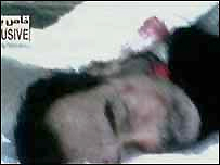 صدام حسین کو پھانسی گھاٹ پر لے جانے والوں اور خود جلاد نے اپنے منہہ نقابوں سے چھپا رکھے تھے۔ سابق عراقی صدر نے قیدیوں کے لباس کی بجائے سفید قمیض اور گہرے رنگ کا اوور کوٹ پہن رکھا تھا۔ اگرچہ انہوں نے ہُڈ پہننے سے انکار کر دیا تھا تاہم جلاد نے پھندا ڈالنے سے قبل صدام حسین کی گردن میں ایک چھوٹی سے پٹی ڈالی۔ تاہم صدام حسین کی موت کے لمحات کو وڈیو میں نہیں دکھایا گیا اگرچہ سفید کفن میں لپٹی ہوئی ان کی لاش کی تصاویر عالمی نشریاتی اداروں پر دکھائی گئیں۔ عراق کے سرکاری ٹیلی وژن عراقیہ نے صدام حسین کے پھانسی کے خبر دیتے ہوئے اعلان کیا: ’مجرم صدام حسین کو تختۂ دار پر چڑھا دیا گیا ہے۔‘ |