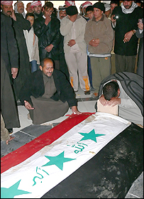 انہوں نے کہا کہ وہ ویڈیو میں سنائی دی جانے والی طعنہ زنی کی وجوہات سمجھ سکتے ہیں۔ ان کا کہنا تھا کہ’ صدام کے ہاتھوں تکالیف کا شکار ہونے والوں کی تعداد لاکھوں میں ہے اور ان میں سے کچھ کسی نہ کسی حیثیت میں اس موقع پر موجود بھی ہوں گے۔ ممکن ہے کہ یہ ان افراد کے لیے ایک جذباتی لمحہ ہو اور وہ اپنے آپ پر قابو نہ رکھ سکے ہوں‘۔ یاد رہے کہ معزول عراقی صدر انہتر سالہ صدام حسین کو’انسانیت کے خلاف جرائم‘ کی پاداش میں ہفتہ کی صبح بغداد میں پھانسی پر لٹکا دیا گیا تھا اور پھانسی کے بائیس گھنٹے بعد رات کے اندھیرے میں انہیں ان کے آبائی قصبے عوجہ میں دفنا دیا گیا تھا۔ ان کی تدفین کے موقع پر صرف ان کے قبیلے کے چند لوگ موجود تھے۔ بی بی سی کے جان سمپسن کا کہنا ہے کہ عراقی حکومت اس حوالےسے پریشان نہیں کہ صدام کی قبر ان کی حامیوں کے اجتماع کا مقام بن سکتی ہے اور عراقی وزراء کے خیال میں صدام کی پھانسی سے عراق پر ان کے اثر کامکمل ختامہ ہو گیا ہے۔ تاہم صدام کے متعدد حامیوں نے انہیں دفنائے جانے کے بعد ان کے آبائی قصبے کا دورہ کیا اور ان کی موت کا بدلہ لینے کا عزم کیا ہے۔ چوبیس سالہ محمد نتیق کا کہنا تھا کہ’ خدا کو صدام کا ایسا انجام منظور تھا لیکن ان کا مشن اور وہ راستہ جو انہوں نے اپنایا ہمیشہ موجود رہے گا‘۔ |