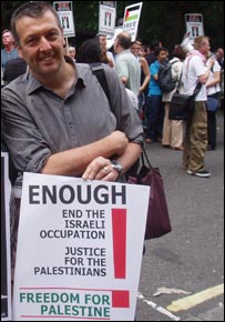 مرکزی لندن کی سڑکیں سنیچر کے روز چند گھنٹوں کے لیے ’فلسطین آزاد کرو‘ اور ’اسرائیلی قبضہ ختم کرو‘ کے نعروں سے گونج اٹھیں۔ ہزاروں کے قریب مظاہرین جو آزادئ فلسطین کے لیے آواز اٹھانے کے لیے برطانیہ کے دوسرے شہروں سے جمع ہوئے تھے، لندن کی سڑکوں سے ہوتے ہوئے ٹرافالگر سکوئر پہنچے۔ ٹرافالگر سکوئر پر دن کے خاتمے تک تقریروں کا سلسلہ جاری رہا۔ یہ احتجاجی مظاہرہ مشرق وسطیٰ کی چھ روزہ جنگ کی چالیسویں سالگرہ کے موقع پر یادگاری تقریبات کا حصہ تھا۔ اس مظاہرے کا اہتمام تقریبا پچاس کے قریب تنظیموں کے ایک اتحاد نے کیا تھا۔ اینف یعنی ’بہت ہوچکا‘ نامی اس اتحاد میں حقوق انسانی اور مذہبی تنظیموں کے علاوہ ٹریڈ یونین اور پارلیمانی اراکین اور جارج گیلووے کی سیاسی جماعت ریسپیکٹ شامل تھیں۔ انفرادی طور پر تقریبا سبھی بڑی سیاسی جماعتوں کے پارلیمانی اراکین بھی اس مظاہرے میں شامل تھے۔