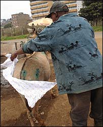 کینیا کے قصبے لیمورو میں گدھوں کے مالکان آستین چڑھا کر میونسپل حکام کے اس حکم کے خلاف کھڑے ہو گئے ہیں جس میں انہیں کہا گیا ہے کہ وہ اپنے گدھوں کو لنگوٹ پہنا کر رکھیں۔ میونسپل کونسل کا کہنا ہے کہ مذکورہ حکم کا اطلاق سولہ جولائی سے ہونا تھا اور اس کا مقصد شہر کی سڑکوں کو صاف رکھنا ہے۔ لیکن اس خبر کے ذرائع ابلاغ میں آنے اور شہریوں کےاحتجاج کے بعد حکام فی الحال اس منصوبے کو موخر کرنے پر مجبور ہو گئے ہیں۔ گدھے پالنے والے ایک شخص کا کہنا تھا کہ ’ اگر ہم گدھوں کو نیپی پہنانے لگ گئے تو کل حکام کہیں گے کہ گائے کو بھی پہنائیں۔‘ اس سلسلے میں شہر کے میئر جیمز کوریا نے کہا کہ ’ ہمیں کوئی طریقہ نکالنا پڑے گا کہ گوبر سے ہماری جان چھوٹے۔‘ دارالحکومت نیروبی سے پچاس کلومیٹر دور اس قصبے میں گدھے پالنے والے ایک دوسرے شخص کا کہنا تھا کہ کونسل کا یہ منصوبہ قابل عمل نہیں، اس لیے انہیں چاہیئے کہ وہ مزید خاکروب بھرتی کریں۔ مہلک دو لتّیاں کمیونٹی میں گدھوں کے اہم کردار کا ذکر کرتے ہوئے اس شخص کا مزید کہنا تھا کہ ’ گدھے بہت اہم ہیں۔ اس علاقے میں اکثر لوگوں کے پاس کاریں نہیں ہیں اور گدھے ٹرنسپورٹ کا بڑا ذریعہ ہیں۔‘