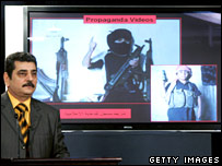 امریکی فوج کا کہنا ہے کہ اتحادی فوج کو دسمبر میں بغداد کے شمال میں القاعدہ کی ایک پناہ گاہ پر حملے کے دوران اس طرح کی پانچ وڈیو ٹیپس ملیں۔ ان وڈیو ٹیپس میں نظر آتا ہے کہ تربیت کے دوران لڑکے بندوقیں اور بم لہرا رہے ہیں۔ نامہ نگاروں کے خیال میں امریکیوں کو امید ہے کہ ان مناظر کو دیکھ کر عراقی اسلامی شدت پسندوں سے منہ موڑ لیں گے۔ ان وڈیوز کے مطابق نوجوان پستولوں، مشین گنوں اور دیگر اسلحے کے ساتھ ادھر ادھر دوڑے پھرتے ہیں۔ ایک منظر میں لڑکے اغوا کا ایک سین کرتے ہیں جہاں وہ رضا کاروں کے سر پر بندوق رکھ کر ان کو گرد بھری زمین پر جھکنے پر مجبور کرتے ہیں۔ بی بی سی کے جم میور نے بغداد سے لکھا ہے کہ وڈیو کے مطابق کالے رنگ کے ماسک لگائے ہوئے یہ بچے بعد میں مغویوں کے ذبح ہونے کا اعلان کرتے ہیں۔ امریکی فوج کو یقین ہے کہ یہ فوٹیج پروپیگنڈا کے لیے بنایا گیا تھا تاکہ القاعدہ میں نئے نوجوانوں کو بھرتی کیا جا سکے۔ امریکی فوج کے ترجمان ریئر ایڈمرل گریگوری سمتھ کا کہنا ہے کہ بظاہر ایسا نہیں لگتا کہ مذکورہ وڈیو میں حقیقت میں کسی کو اغوا کیا گیا تھا بلکہ یہ صرف یہ ایک منظر تھا۔ |