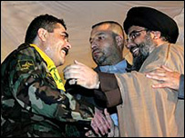سٹیج میں ان کے برابر والی نشست پر سمیر القنطار بیٹھے ہوئے تھے جو ان پانچ لبنانی شہریوں میں شامل تھے جنہیں دو اسرائیلی فوجیوں کی لاشوں کے بدلے ایک اسرائیل جیل سے رہا کیا گیا تھا۔ وہ کسی بھی اسرائیل جیل میں سب سے زیادہ عرصہ گزارنے والے لبنانی قیدی ہیں۔