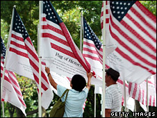 گیارہ ستمبر کو نیویارک میں ورلڈ ٹریڈ سنٹر، واشنگٹن میں پینٹاگن اور ریاست پینسلوینیا میں مسافر طیاروں کے ٹکرانے سے تقریباً تین ہزار افراد ہلاک ہو گئے تھے۔ واشنگٹن میں صدر بش اور نائب صدر ڈک چینی نے تعزیت تقریب میں شرکت کی۔ ان حملوں کے نتیجے میں امریکہ نے افغانستان اور عراق میں جنگیں شروع کیں جو کئی برس گزر جانےکے ختم ہونے کےقریب نظر نہیں آتیں۔ واشنگٹن کی تقریب میں سینکڑوں لوگوں نےشرکت کی جن میں سینئر سیاست دانوں، فوجی افسران اور سفارتکاروں کے علاوہ وہ باورچی، پلمبر اور اس نوعیت کے دوسرے فرائض انجام دینے والے وہ لوگ بھی شامل تھے جو وہائٹ ہاؤس میں کام کرتے ہیں۔ پنٹاگن میں ایک نئی یادگار حملوں میں ہلاک ہونے والوں کے نام منسوب کی گئی۔اس حملے میں ایک سو چوراسی لوگ ہلاک ہوئے تھے۔ صدر بش نے کہا کہ یہ یادگار امریکیوں کے کبھی نہ جھکنے کے جذبے کو خراج عقیدت پیش کرتا ہے۔ انہوں نے امریکی فوج کی بھی تعریف کرتے ہوئے کہا کہ اس نے گزشہ سات برسوں میں امریکہ کو محفوظ رکھا ہے۔ امریکہ کے نائب وزیر دفاع گورڈن انگلینڈ نے کہا کہ’ آج ہم یہ عزم کرتے ہیں کہ یہاں جو کچھ ہوا تھا اسے ہم کبھی ہیں بھولیں گے اور یہ عزم کرتے ہیں کہ امریکہ میں ایسا دوبارہ نہیں ہونے دیں گے۔‘ واشنگٹن میں یہ یاد گار بائیس ملین ڈالر مالیت اور ایک اعشاریہ نو ایکڑ رقبے پر تعمیر کی گئی ہے۔ امریکہ کی رپبلیکن اور ڈیموکریٹ پارٹیوں کے صدارتی امیدواروں جان مکین اور باراک اوباما نے گراؤنڈ زیرو پر ہونے والے یادگاری تقریب میں حصہ لیا۔ ایک مشترکہ بیان میں دونوں جماعتوں کے امیدواروں کی طرف سے کہا گیا ہے کہ وہ اپنی انتخابی مہم کو چوبیس گھنٹے کے لیے معطل کرکے اس تقریب میں عام امریکیوں کی حیثیت سے شریک ہوں گے۔ وائٹ ہاؤس کی پریس سیکریٹری ڈانا پرنیو نے بدھ کو کہا کہ ’صدر بش ہر روز صبح اٹھتے ہی اور رات کو سونے سے قبل گیارہ سمتبر کو یاد کرتے ہیں۔‘ انہوں نے کہا کہ ’گیارہ ستمبر کے موقع پر ہم ڈیموکریٹ رپبلکنز کی حیثیت میں نہیں بلکہ عام امریکیوں کی طرح یکجا ہیں۔‘ القاعدہ کی جانب سے جب یہ حملے کیے گیے تو جارج بش کو صدر کا عہدہ سنبھالے ہوئے ایک برس بھی پورا نہیں ہوا تھا۔ |