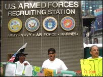 | یہ احتجاجی مظاہرہ نیویارک میں امریکی فوجی بھرتی کے دفتر کے سامنے کیا گیا |
