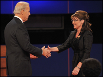 نائب صدارت کی امیدوار سارہ پیلن نے بھی لوگوں کی توقع سے کہیں بہتر کارکردگی دکھائی اور اپنے ٹیلی ویژن انٹرویوز کے برعکس ایک زِیرک اور معاملہ فہم خاتون کے طور پر اپنا تاثر قائم رکھنے میں کامیاب رہیں۔