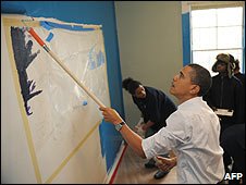 امریکہ میں سیاہ فام افراد کے حقوق کی تحریک کے رہنما مارٹن لوتھر کنگ کی یاد میں سالانہ تعطیل کے موقع پر باراک اوباما نے واشنگٹن میں سجاوٹ کے کام میں ہاتھ بٹایا ہے۔