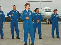 کولمبیا کی تباہی کے ڈھائی سال بعدامریکی خلائی شٹل ڈسکوری خلاء کی جانب اڑان کو تیار ہے اور وہ سات خلاء نورد جو ڈسکوری کو اڑائیں گے فلوریڈا میں ناسا کے اڈے پر پہنچ گئے ہیں۔