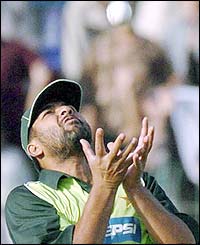 انڈیا کے 293 کے جواب میں پاکستان کی پوری کی پوری ٹیم 253 کے سکور پر آؤٹ ہو گئی ہے اور اس طرح انڈیا کی ٹیم ون ڈے سیریز جیت چکی ہے۔ پاکستان کے آخری آؤٹ ہونے والے کھلاڑی معین خان تھے جنہوں نے 72 رنز بنائے۔ اس سے قبل شعیب اختر رن آؤٹ ہو گئے تھے۔ پاکستان کو اس سے وقت میچ میں واپس آنے کی کچھ کچھ امید ہو گئی تھی جب محمد سمیع اور معین خان نے ایک عمدہ پارٹنرشپ بنائی تھی۔ محمد سمیع کوظہیر خان نے کلین بولڈ کیا۔ پاکستان کے ساتویں آؤٹ ہونے والے بیٹسمین شعیب ملک تھے جنہوں نے دباؤ کے باوجود ایک عمدہ اننگز کھیلی اور ایک چھکے اور تین چوکوں کی مدد سے 89 گیندوں پر 65 رنز بنائے۔ اس سے قبل دو سو چورانوے کا ہدف حاصل کرنے کے لئے پاکستان کے کپتان انضمام الحق سمیت چھ کھلاڑی آؤٹ ہو چکے تھے۔ انضمام سے پہلے یونس خان کے آؤٹ ہونے سے پاکستانی ٹیم کی مشکلات مزید بڑھ چکی تھیں۔ یونس اس وقت آؤٹ ہوئے ہیں جب پاکستان کا اسکور اٹھاون ہوا۔ اس سے پہلے اننگز کے آغاز میں ہی تین وکٹوں کے گرنے سے پاکستانی ٹیم مشکل میں آ چکی تھی۔ انڈیا نے سات وکٹوں کے نقصان پر 293 رنز بنائے تھے جس میں لکشمن کی سنچری شامل ہے۔ یوں پاکستان کے سامنے 294 رن کا ٹارگٹ ملا تھا۔ آخری آؤٹ ہونے والے کھلاڑی محمد کیف ہیں جو سولہ رن بنا کر سمیع کی بال پر کیچ آؤٹ ہوئے۔ ان سے پہلے آؤٹ ہونے والے کھلاڑی لکشمن ہیں جو 107 رن بناکر شعیب ملک کی بال پر آؤٹ ہوگئے۔ اس طرح وہ اس میچ کی سنچری سکور کرنے والے پہلے کھلاڑی ہیں۔ بھارت کی پانچویں وکٹ 227 رن پر گری جب شعیب ملک نے یووراج سنگھ کو اٹھارہ رن پر آؤٹ کیا۔ چوتھے آؤٹ ہونے والے کھلاڑی راہول ڈراوڈ تھے جو صرف چار رن بنا سکے۔ تیسرے آؤٹ ہونے والے کھلاڑی گنگولی تھے جنہوں نے 45 رن سکور کئے۔ سچن تندولکر سینتیس رنز بناکر معین خان کے ہاتھوں محمد سمیع کی گیند پر آؤٹ ہوئے۔ پہلے آؤٹ ہونے والے کھلاڑی سہواگ تھے جنہوں نے بیس رنز بنائے۔ انہیں معین خان نے شبیر احمد کی گیند پر آؤٹ کیا۔ سچن تندولکر اور ورندر سہواگ نے انڈین بیٹنگ کا آغاز کیا۔ پاکستان کی طرف سے شعیب اختر اور شبیر احمد نے بالنگ کا آغاز کیا۔ اس سے قبل پاکستان نے آخری ون ڈے میچ میں ٹاس جیت کر انڈیا کو بیٹنگ کی دعوت دی۔