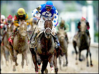 سمارٹی جونز سنیچر کو کینٹکی ڈربی جیت کر پانچواں گھوڑا بن گیا ہے جو کینٹکی کی گھڑ دوڑ میں کبھی نہیں ہارا۔ چھوٹے قد و قامت کا سمارٹی جونز جسے ایک آنکھ سے دکھائی بھی نہیں دیتا، یہ ریس جیت کر ساڑھے سات لاکھ ڈالر انعام کا حقدار ٹھہرا جبکہ اس کے مالکان رائے اور پیٹریشیا چیپمین کے حصے پچاس لاکھ ڈالر بونس کی رقم آئی کیونکہ انہوں نے آرکنساس ڈربی اور ریبل سٹیکس کی فتوحات میں اضافہ کیا۔ ریس کے اختتامی مرحلے میں تیز بارش کے دوران گھڑ سوار سٹوورٹ ایلیٹ، لائن ہارٹ پر پونے تین لینگتھوں کی سبقت سے ریس جیت گئے۔ رائے چیپمین کا کہنا تھا کہ ’میرے پاس جذبات کے اظہار کے لئے الفاظ نہیں ہیں۔ مجھے سمارٹی جونز پر فخر ہے‘۔ بارش کے باعث سوا میل کا بیضوی ریس ٹریک ’دی چِل ڈاؤنز‘ کیچڑ سے بھر چکا تھا لیکن جان سروس کا تربیت یافتہ تین سالہ سمارٹی جونز مسلسل ساتویں ریس جیتنے میں کامیاب رہا۔ اس موقع پر گھڑ سوار سٹوورٹ ایلیٹ کا کہنا تھا کہ ’میری خوشی کا احساس بیان سے باہر ہے۔ مجھے یقین نہیں آ رہا‘۔ |