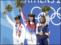 ایتھنز اولمپکس میں مردوں اور خواتین دونوں کے مقابلوں میں چین پہلے طلائی تمغے جیتنے والے ملک کا اعزاز حاصل کرنے میں کامیاب ہو گیا ہے۔