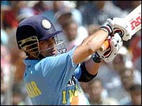بھارت کے کپتان سورو گنگولی نے ٹاس جیت کر پہلے کھیلنے کا فیصلہ کیا اور سچن تندولکر اور سہواگ نے اننگز کا آغاز کیا۔ دونوں بلے بازوں نے بڑے اعتماد سے اننگز شروع کی لیکن جب سکور 65 پر پہنچا تو سہواگ یونس خان کی ایک عمدہ تھرو پر رن آؤٹ ہو گئے۔ تندولکر نے شاندار بلے بازی کا مظاہرہ کرتے ہوئے سنچری سکور کی۔ وہ 123 رن بنا کر شعیب ملک کی گیند پر بولڈ ہوئے۔ کپتان سورو گنگولی ایک مرتبہ پھر ناکام رہے اور 18 رن بنا کر رن آؤٹ ہوئے۔ مہندر دھونی کو47 رن پر شعیب ملک کی گیند پر کامران اکمل نے کیچ کیا۔ بھارت کے آخری آؤٹ ہونے والے کھلاڑی محمد کیف تھے جنہیں 5 کے انفرادی سکور پر محمد سمیع نے بولڈ کیا۔ اس سے قبل راہول ڈراوڈ 19 رن بنا کر رانا نوید الحسن کے ہاتھوں کیچ ہوئے تھے۔ یوراج سنگھ 35 جبکہ ظہیر خان بنا کوئی رن بنائے ناٹ آؤٹ رہے۔ پاکستان کی جانب سے شعیب ملک نے تین جبکہ محمد سمیع نے ایک وکٹ حاصل کی۔