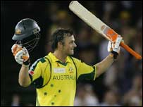 پونٹنگ نے 66 رن بنائے، انہیں فلنٹاف نے رن آؤٹ کیا۔ ڈیمین مارٹن 54 رن بنا کر فلنٹاف کی ہی گیند پر بولڈ ہوئے۔ مائیکل کلارک 17 جبکہ اینڈریو سائمنڈز صرف پندرہ گیندوں پر 31 رن بناکر ناٹ آؤٹ رہے۔ آسٹریلوی بلے بازوں نے ورلڈ الیون کے بالروں کی جم کر پٹائی کی اور چھ اعشایہ پانچ رن فی اوور کی اوسط سے رن بنائے۔ ورلڈ الیون کی طرف سے مرلی دھرن نے تنتالیس رن دے کر جبکہ وریندر سہواگ اور فلنٹاف نے بالترتیب بیس اور چونسٹھ رن کے عوض ایک ایک وکٹ حاصل کی ہے۔ ورلڈ الیون نے اپنی ٹیم میں ایک تبدیلی کی اور متبادل کھلاڑی کے طور پر شاہد آفریدی کی جگہ ویسٹ انڈیز کے کرس گیل کو ٹیم میں شامل کیا گیا ہے۔ سپر سیریز کے پہلے ایک روزہ میچ میں آسٹریلیا نے ورلڈ الیون کو ترانوے رن سے شکست دی تھی۔ آسٹریلیا کی ٹیم: رکی پونٹنگ (کپتان)، ایڈم گلکرسٹ، ڈیمئن مارٹن، مائیکل ہسے، مائیکل کلارک، شین واٹسن، اینڈریو سمنڈز، کیمرون وائٹ، بریٹ لی، گلین میگرا، ناتھن بریکن۔ ورلڈ الیون: شان پولاک (کپتان)، وریندر سہواگ، کمار سنگاکارا، راہول ڈراوڈ، ژاک کیلس، برائن لارا، کیون پیٹرسن، اینڈریو فلنٹوف، ڈینئل ویٹوری، شعیب اختر اور کرس گیل۔ |