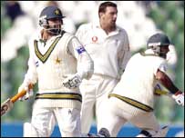 شعیب اختر جتنی بار اچھی کارکردگی کا مظاہرہ کرتے ہیں اتنی بار ہی ان کے مداحوں کے منہ سے اسطرح کے جملے نکلتے ہیں: ’خدا کرے شعیب کا جذبہ قائم رہے۔ خدا کرے شعیب اپنی توجہ کھیل پر اسی طرح مرکوز رکھیں۔‘ اس بار بھی کچھ ایسا ہی ہورہا ہے۔ پاکستان کی انگلستان کے خلاف اچھی کارکردگی کے باوجود خیال یہی ہے کہ پاکستان کو ابھی کافی اِمپروومنٹ کی ضرورت ہے۔ یونس خان، محمد یوسف اور انضمام الحق کے ساتھ شعیب اختر ٹیم کے چوتھے ستون بن سکتے ہیں۔ بس انہیں اپنی فِٹنس قائم رکھنی ہے اور توجہ کھیل پر مرکوز رکھنی ہے۔ محمد یوسف، کامران اکمل، انضمام الحق اور شعیب اختر میں سے کوئی بھی جمعہ کےروز کا بہترین کھلاڑی قرار دیا جاسکتا ہے۔ ہمارے خیال میں تو اس اعزاز کا امیدوار قذافی سٹیڈیم میں موجود وہ تماشائی بھی ہے جو ایک پلےکارڈ کے ذریعے لوگوں کو یہ باور کرانے کی کوشش کررہا تھا کہ میدان عمل میں ناموں اور ذاتی باتوں سےقطع نظر ایک کھلاڑی کا کھیل اسے ممتاز کرتا ہے۔ ایک ایسے ملک میں جہاں مذہب جیسی ذاتی باتوں کا اثر بڑھتا جارہا ہے، کھیل کو بھی مذہب سے بالاتر رکھنا مشکل ہوتا جارہا ہے۔ ہونا تو یہ چاہئے کہ اگر آپ کو رین بیل کا کھیل اچھا لگا تو آپ انہیں اپنا ووٹ دیں اور اگر محمد یوسف کی اننگز اچھی لگی ہے تو انہیں بہترین کھلاڑی کے خطاب سے نوازیں۔ اگر آپ یوسف کو صرف اس لیے پسند کریں کہ وہ آپ کے ہم مذہب ہیں تو شاید آپ بلامقصد کھیل رہے ہیں۔