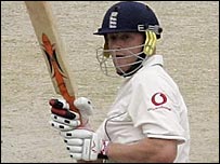 انڈین اننگز کے آؤٹ ہونے والے پہلے کھلاڑی وریندر سہواگ تھے جو ایک مرتبہ پھر بڑا سکور کرنے میں ناکام رہے اور گیارہ رن بنا کر سٹیو ہارمیسن کی گیند پر وکٹوں کے پیچھے کیچ ہوگئے۔ ڈراوڈ اور وسیم جعفر کی شراکت میں 76 رن بنے اور جب انڈیا کا سکور 96 پر پہنچا تو وسیم جعفر تیس رن بنا کر پنیسر کی گیند پر فلنٹاف کے ہاتھوں کیچ ہوگئے۔ تندولکر صرف چار رن بنا سکے اور فلنٹاف کا پہلا شکار بنے۔ یوراج سنگھ کو ہوگارڈ کی گیند پر بیل نے کیچ کیا انہوں نے پندرہ رن بنائے۔